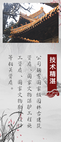 堅持質量為先,信譽為重,管理為本,服務為誠的理念。本著對社會、對建設單位負責的原則,將工程質量、安全生產放在工作的重要位置。我們堅持發(fā)展古建藝術,弘揚民族文化,作為企業(yè)的經(jīng)營管理理念。曲阜古建筑義德古建始終秉承“科學管理,創(chuàng)精品工程,打造古建筑行業(yè)標準”的方針,追求更高質量,為文物保護、傳統(tǒng)建筑事業(yè)做出貢獻。